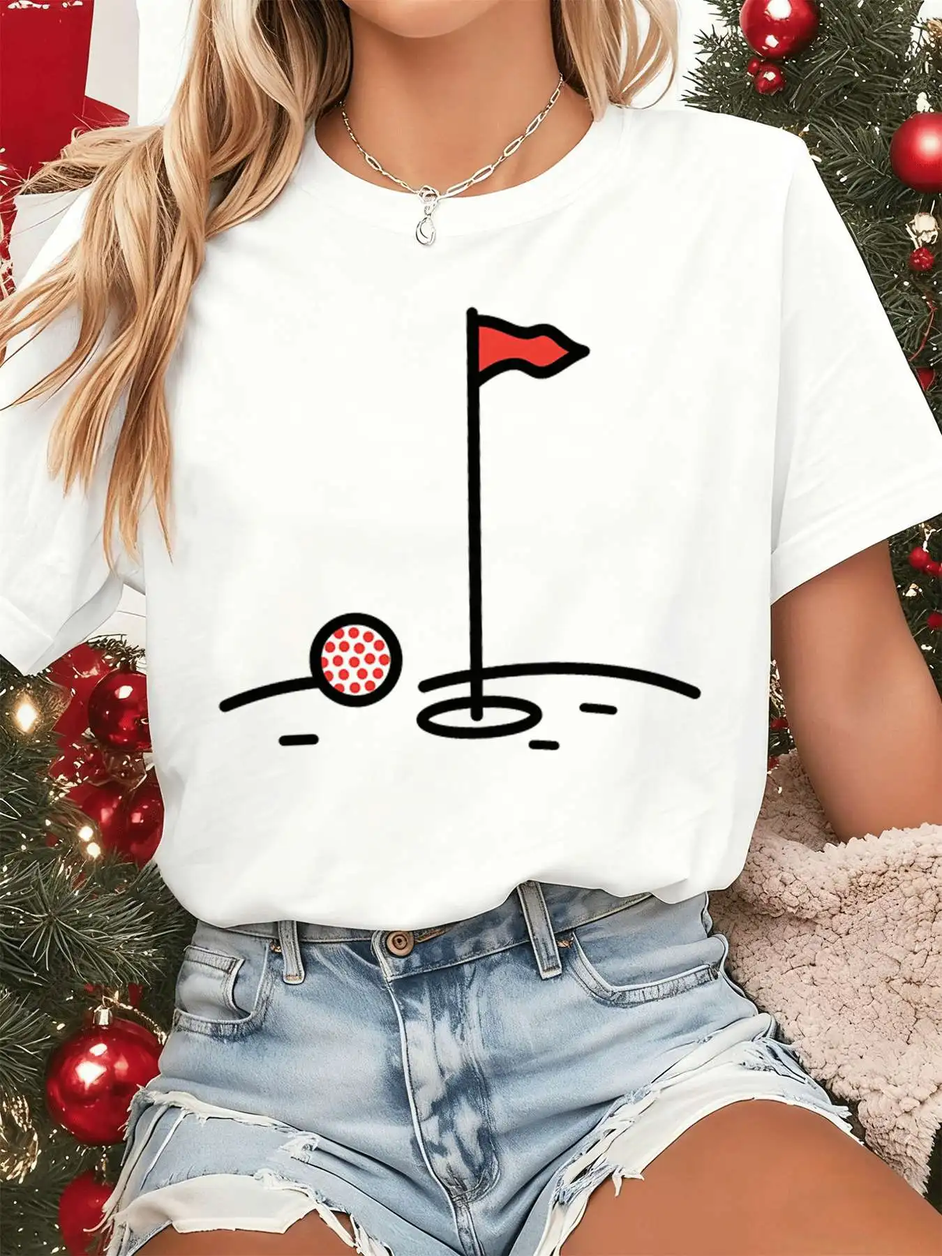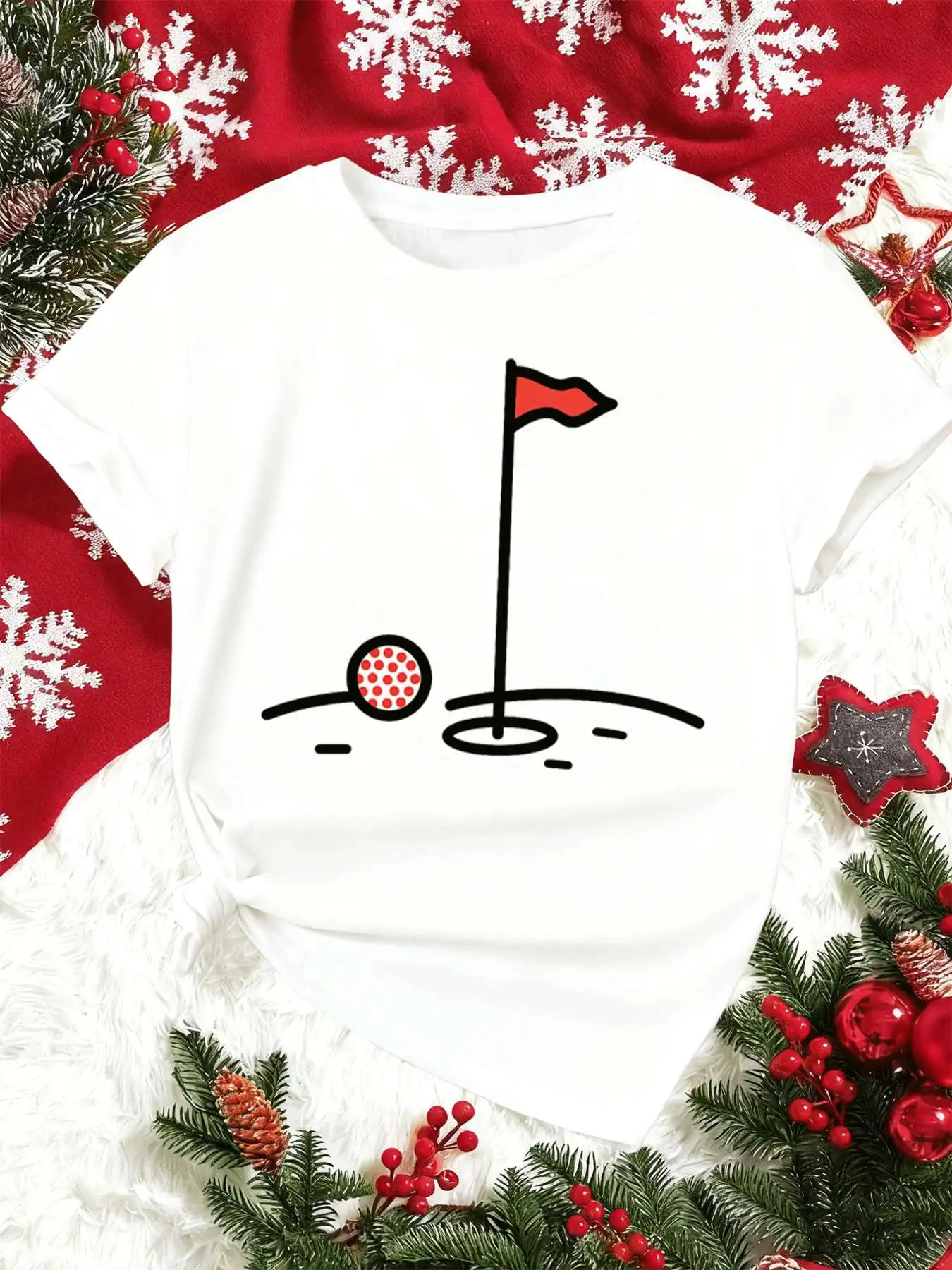 Happy Chrismas’S Day Women’s Round Neck Short Sleeved Casual Printed T-shirt,Comfortable and Soft Breathable Cool,Pure Cotton Quality